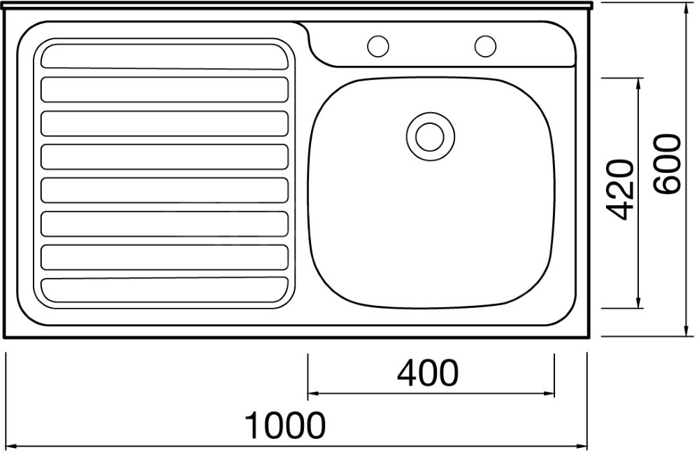 The 1000 x 600 sit-on stainless steel sink is a practical and durable solution, ideal for kitchens where a straightforward and functional setup is required. Featuring a single bowl with integrated drainer, it provides a generous working area for everyday washing, rinsing, and food preparation.