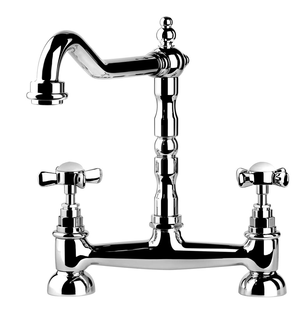 The Baroc Bridge tap showcases rich traditional styling inspired by the decorative elegance of the Baroque period. Featuring intricate detailing, twin crosshead handles and a gracefully curved spout, the bridge design creates a striking focal point that pairs beautifully with ceramic, Belfast and other traditional kitchen sinks.
