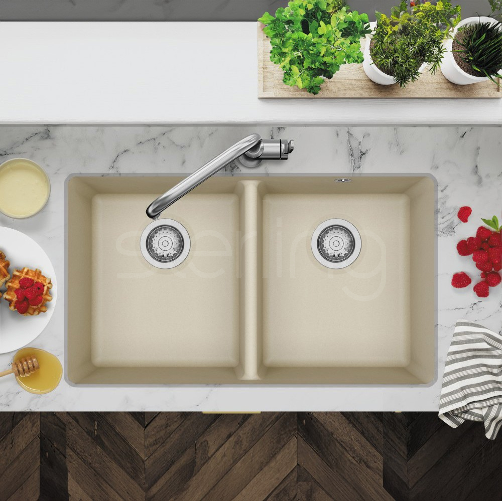 The Nova granite kitchen sink features clean geometric styling with softly radiused corners, creating a balanced design that works well in both contemporary and classic kitchen settings. Its simple, refined shape provides a modern aesthetic while remaining versatile enough to complement a wide range of kitchen styles.