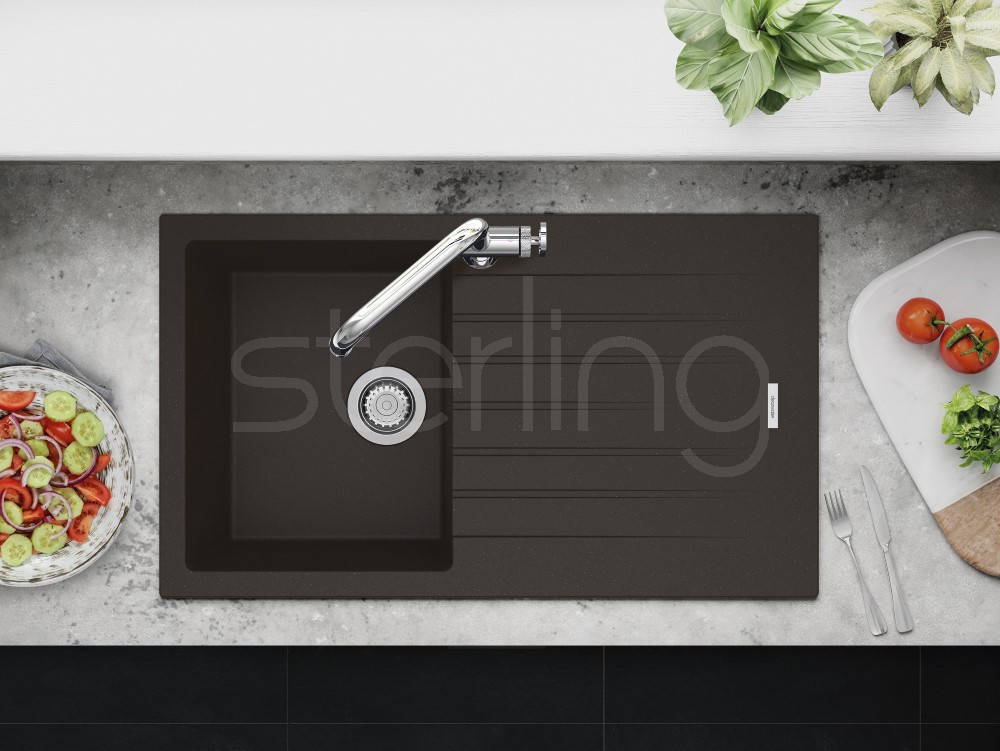The Tivoli D100S granite kitchen sink brings a sharp, modern aesthetic to the kitchen, defined by its crisp radius corners and clean linear drainer design. The subtly graduated drainer grooves add a refined detail, enhancing both the look and everyday functionality of the sink.