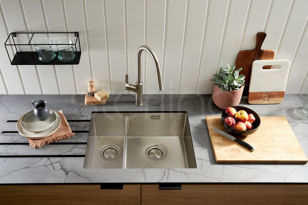 Defined by their fine radius corners and subtle drainage detailing, the Volta range creates a sharp yet understated look while maintaining excellent usability. The smooth internal surfaces and carefully considered bowl proportions ensure efficient water flow and easy cleaning, making them well suited to busy kitchen environments.