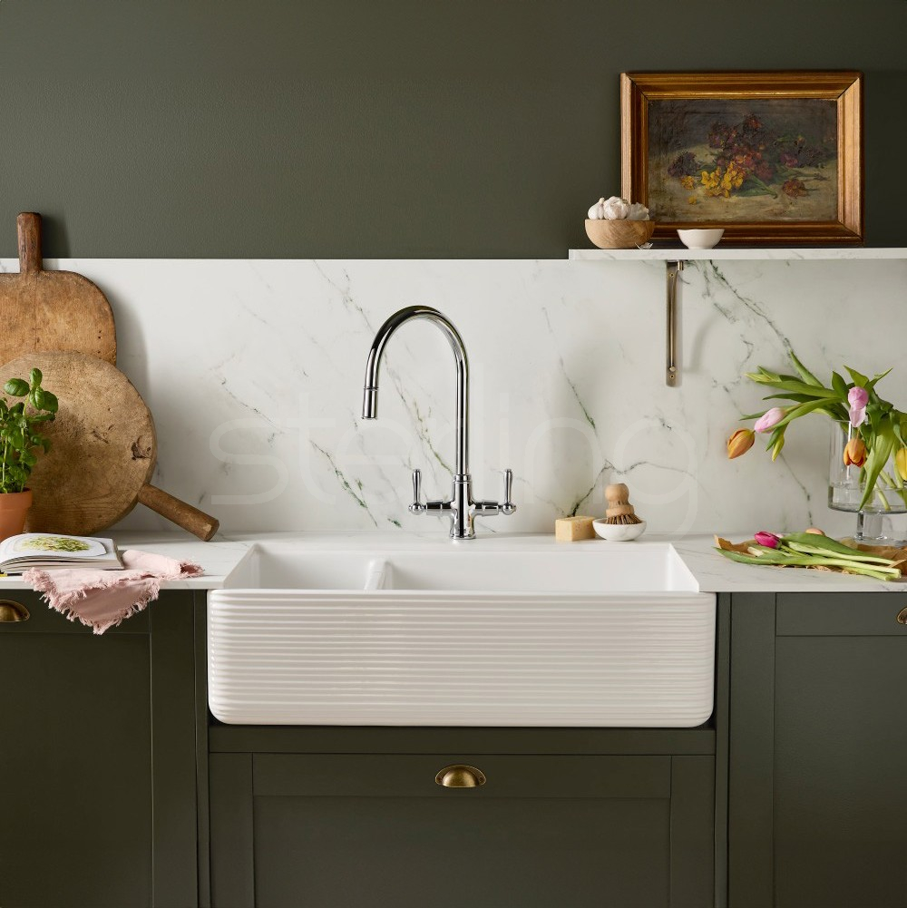 Make a bold statement at the heart of your kitchen with the Theocsbury, a striking ceramic Butler sink defined by its distinctive fine-ribbed apron front and beautifully balanced proportions. Handcrafted in Britain as part of the British Classics collection, this sink blends timeless design with modern-day practicality.