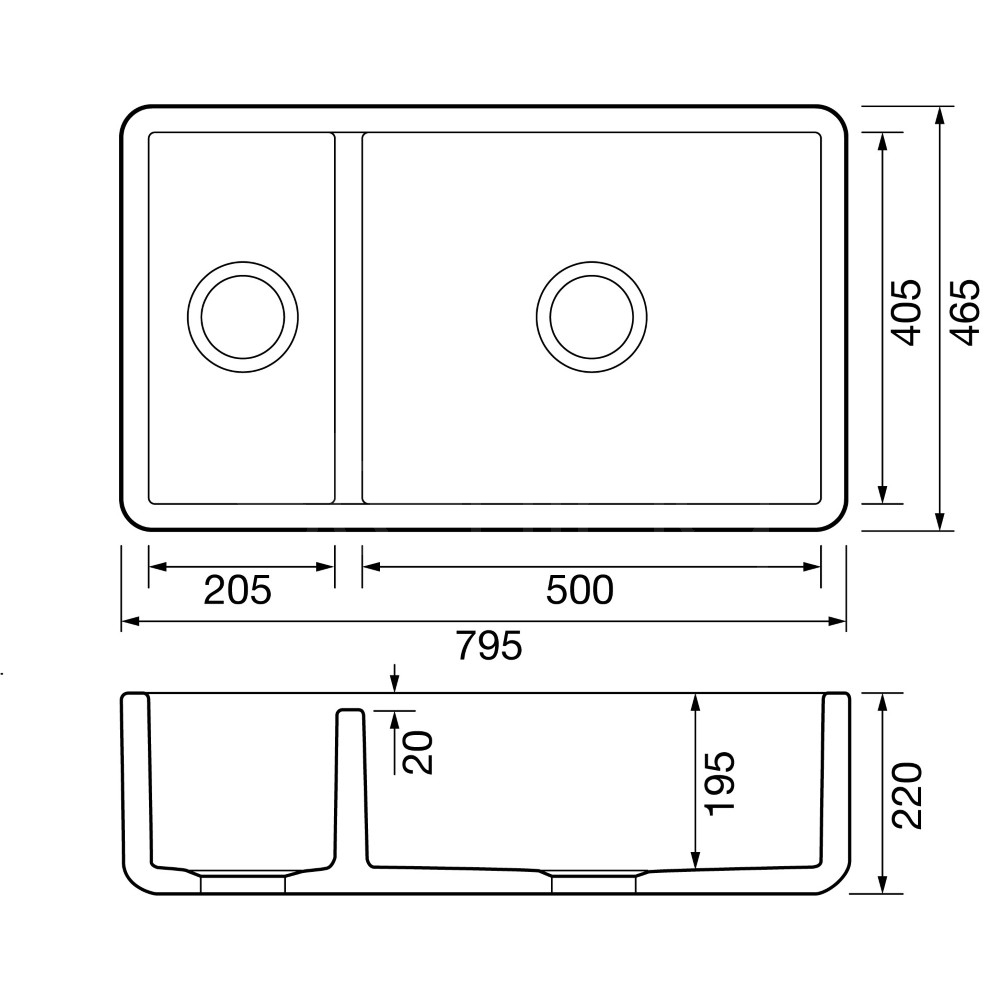 Half Bowl Size: 205 x 405 x 195mm