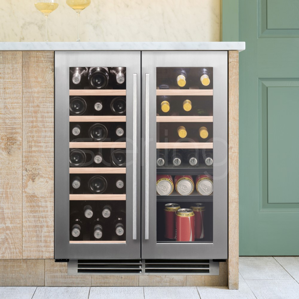Undercounter Dual Zone Side by Side Wine Cooler Stainless Steel.