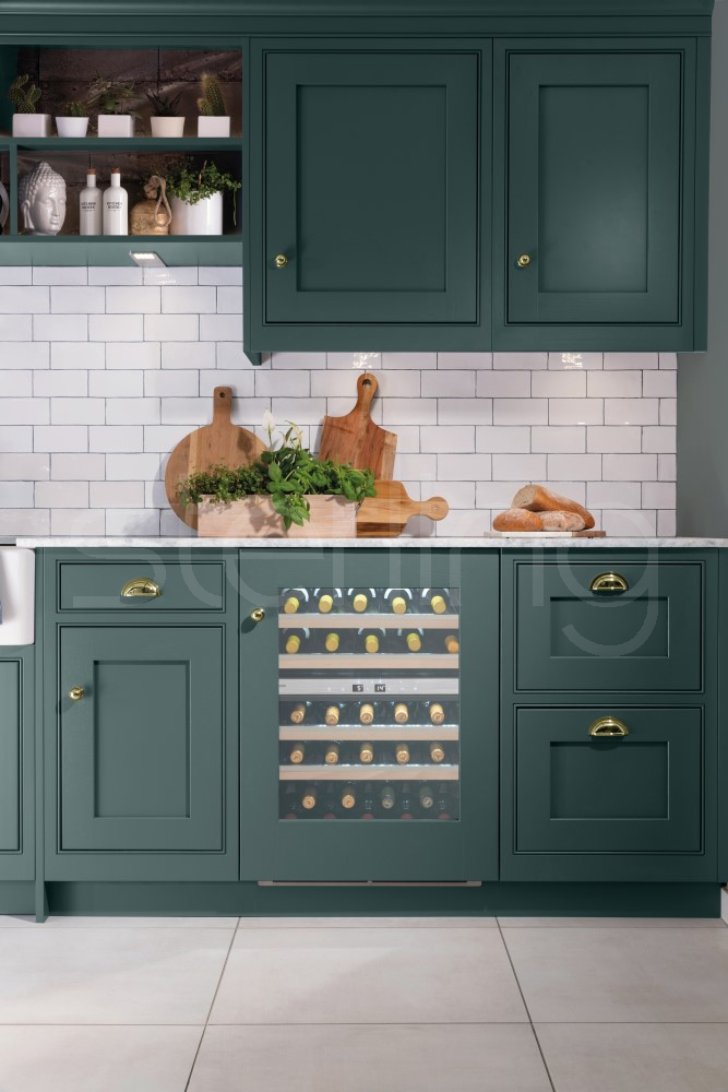 Shelves can accommodate 750ml Bordeaux, Burgundy and Champagne bottles.